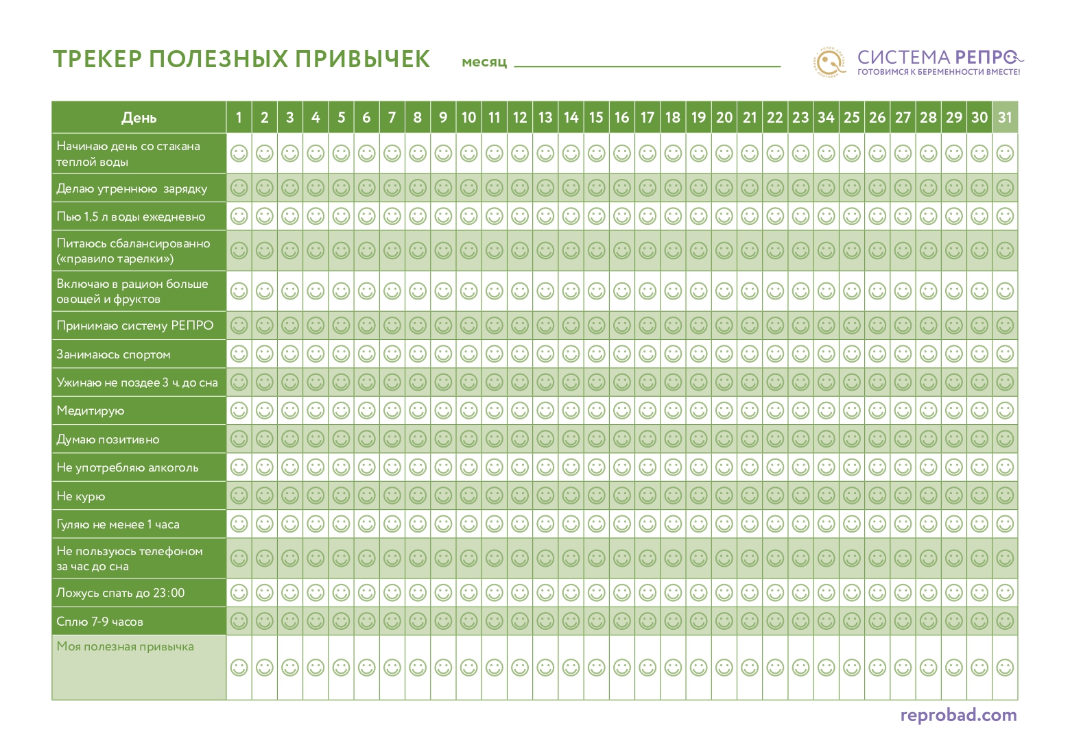 Чтобы здоровые привычки закрепились и стали неотъемлемой частью каждого дня, можно использовать трекер. Это может быть график, нарисованная от руки или распечатанная таблицаили мобильное приложение, в котором ежедневно нужно отмечать выполненное задание.
